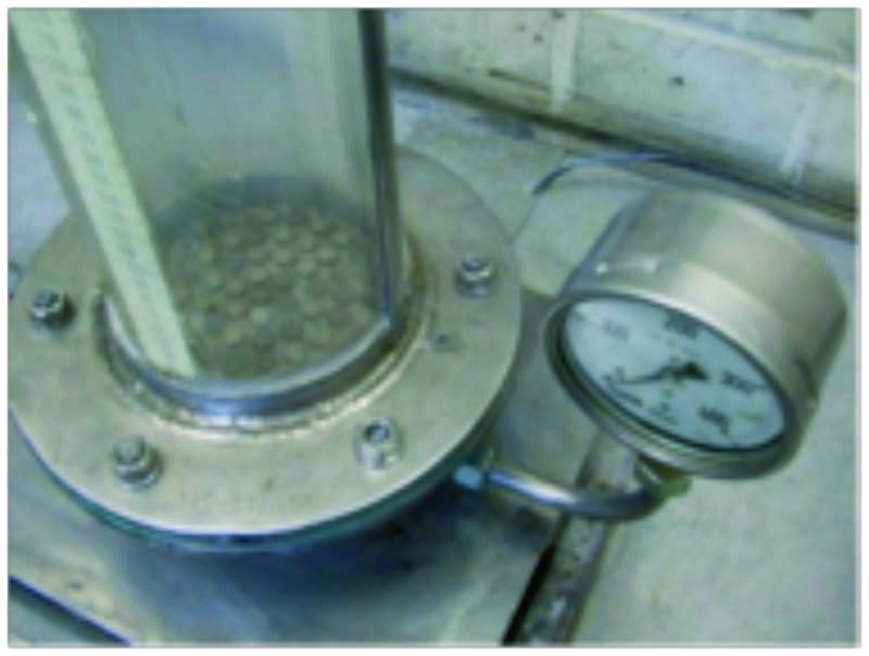 Der Entwicklungsprozess beginnt mit einer Serie von Fluidversuchen, die den Aufschluss über die typischen Fluidparameter des umzuwandelnden Pulvers, sowie der Zwischen- und Endprodukte geben. Diese erste Phase wird in einem mit einer Fluidvorrichtung ausgestatteten transparenten Laborzylinder (Bild 1) unter Umgebungskonditionen durchgeführt und ist für einen potentiellen Anwender der WS-Technologie in der Regel kostenlos. Die Fluidversuche liefern Informationen über das Verhalten der Materialien in einer Wirbelschicht und ermöglichen eine objektive Beurteilung deren Fließeigenschaften. Die ermittelten Fluidparameter zuzüglich der vom Auftraggeber festgelegten Prozessparameter dienen zur Erstellung eines Testprogramms für Laborversuche.