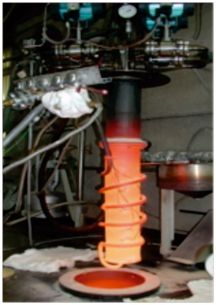 Heiß“-Versuche zeigen den optimalen Weg, um Machbarkeit, Produktqualität und Optimierungspotential zu prüfen. Diese Versuche werden in der Regel als Chargenbetrieb im sogenannten DIP-Reaktor (5 bis 8 Liter - Bild 2) unter Prozessbedingungen durchgeführt, wobei selbstverständlich Proben während der Tests entnommen werden können. Unterschiedliche Gase können zugeführt und deren Mengen bestimmt werden. Daten zum Fluidgasstrom und dessen Zusammensetzung, Prozesstemperaturen (bis 1100°C) sowie Aufheiz-, Halte- und Abkühlzeiten der einzelnen Prozessschritte werden in einem Bericht dokumentiert.