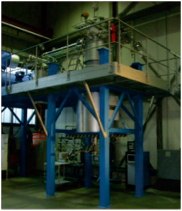 Es stehen mehrere Pilotierungsreaktoren (bis zu 100 Liter – Bild 3) zur Verfügung. Der untere Teil des Reaktors stellt jeweils die eigentliche Wirbelschicht dar. Durch den speziellen Fluidboden wird das Fluidgas verteilt und das eingebrachte Medium fluidisiert. Über verschiedene, einzeln regulierbare Heizzonen wird die erforderliche Wirbelschicht-Temperatur realisiert. Im oberen Teil des Reaktors (Freeboard) befinden sich die Filterelemente. Feinstaub wird hier abgeschieden und in die Wirbelschicht zurückgeführt. Die Temperatur des Freeboard wird über eine weitere, separate Heizzone eingestellt.
