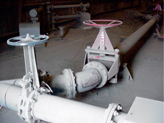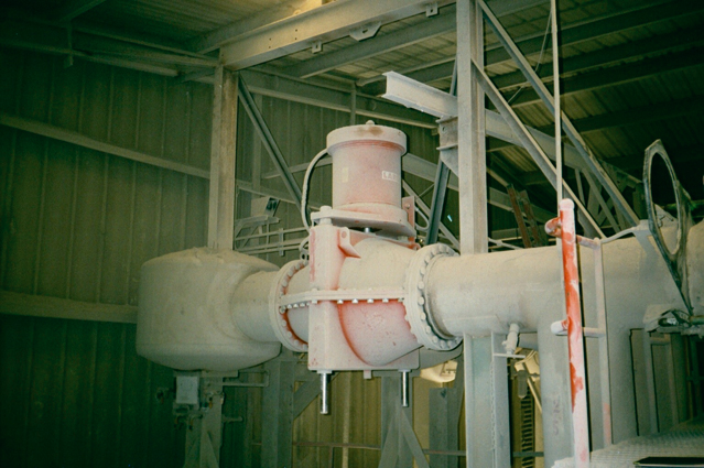 Seen above (Fig. 1) are two Larox valves pinch installed just downstream of switching valves. The internals of the switching valves have been removed and all external holes have been welded shut. The plant is now using the switching valves as a Y and the Larox pinch valves are the main isolation valves to the silo.