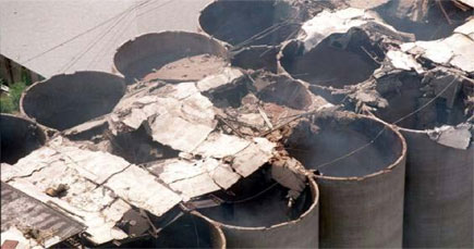 Occasionally a large grain silo / elevator explosion will make the national news, such as the DeBruce Grain facility in Wichita. Many others that are not as spectacular will go unnoticed; however they will still cause equipment damage, loss of production, and possibly personnel injury. On average there are reported about one agricultural dust explosion per month{1}. Of course there are also small unreported explosions or explosions from other products, such as pulverized coal.