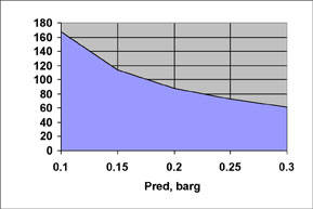 As we increase the capability of the silo to withstand the maximum pressure during venting (Pred) the required vent area is decreased. The first incremental increase in Pred provides the maximum benefit in reducing the vent area as shown in Figure 1.