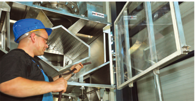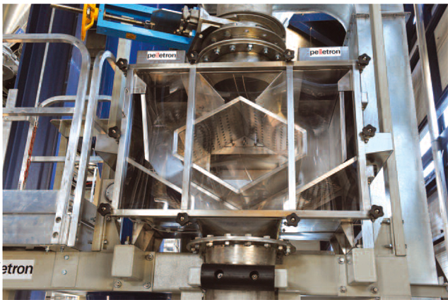 Fig. 1: Handling up to 36 tonnes of pellets per hour,the efficient dedusting unit consistently reduces the dust levels to less than 30 ppm.