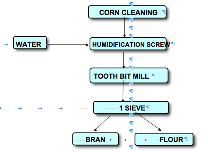With present systems, corn is first gently crushed through the cylinder mill and separated between each and every other passage. Average systems have 6-18 sets of cylinders, sometimes grooved and sometimes flat ones, and the same number of sieves and pneumatic conveyors. These systems are very complex, very automated and subject to continuous update and changes. They are no rational installations and impart considerable losses. The output of the plant determines the quality of flours. French flour (greyish-brown flour), medium white flour and white flour are respectively obtained at 80%, 70% and 55% output. These figures may change depending on the miller skills, as each mill has its own know-how depending on the type and number of installed cylinders.