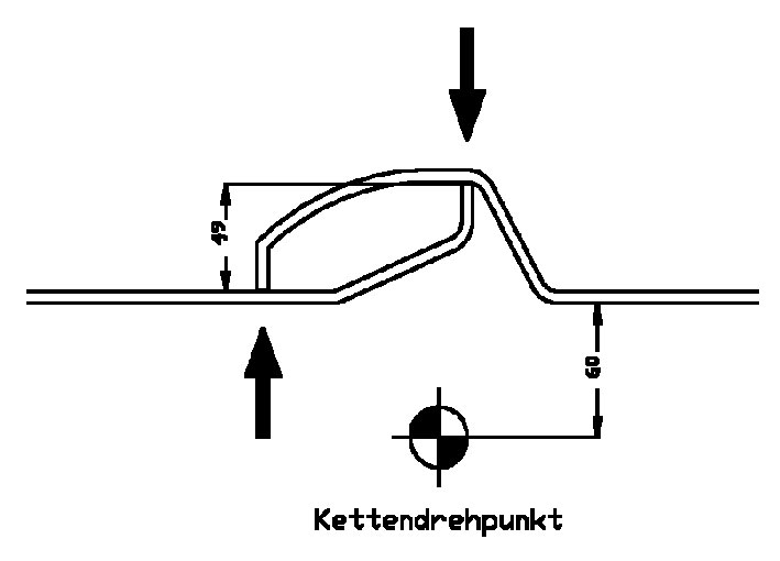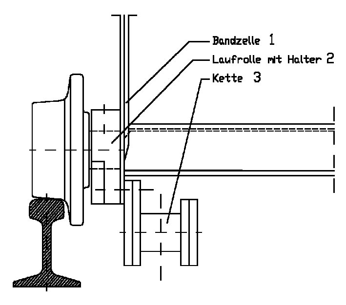 The usual chain fastening under the bottom plate by means of angle straps produces an additional moment due to the distance from chain to roller. This moment, resulting from the dead weight of the chain and from the moment arm (chain / roller) produces an additional load spectrum which has to be absorbed by the bottom plate. The chain fastening to the roller bracket as shown in Figure 2 applies the additional load spectrum to the bottom plate and thereby contributes to a higher sturdiness.