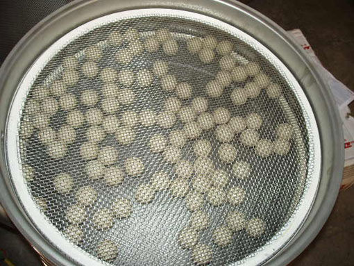 Fig. 4: Self cleaning kit balls bounce between a support screen and the classifying screen. The vertical motion of the separator launches the balls and generates the screen cleaning action.